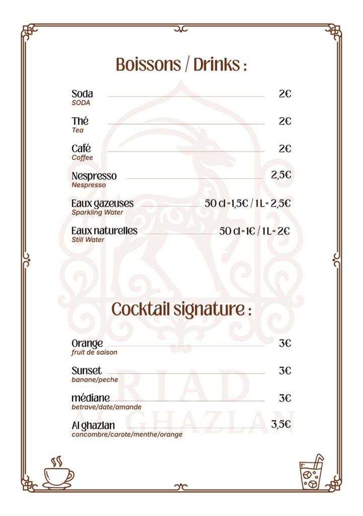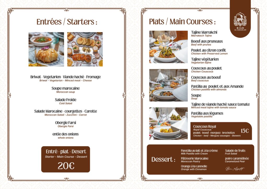 The Restaurant Led by Chef Amina , our restaurant is celebrated for its cuisine and refined ambiance. The terrace offers a unique dining experience with fresh air and city views. We serve breakfast, lunch, and dinner, all prepared fresh to order. Booking in advance is required.